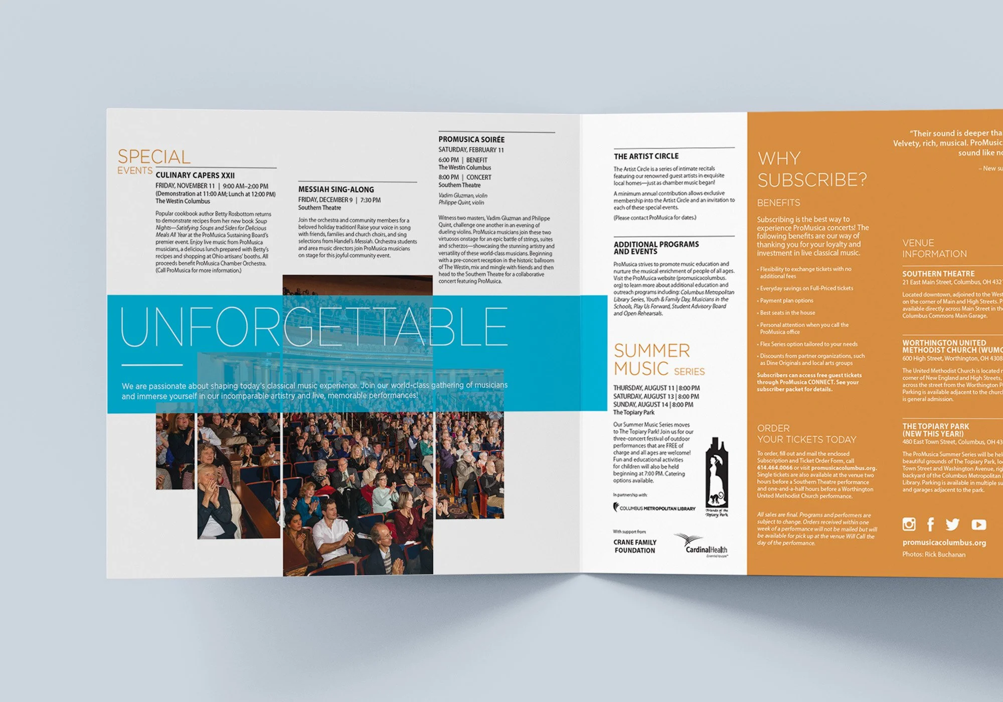 ProMusica Chamber OrchestraA season brochure design that reflects the orchestra’s vision to provide joy, inspiration and connection to audiences at every performance.